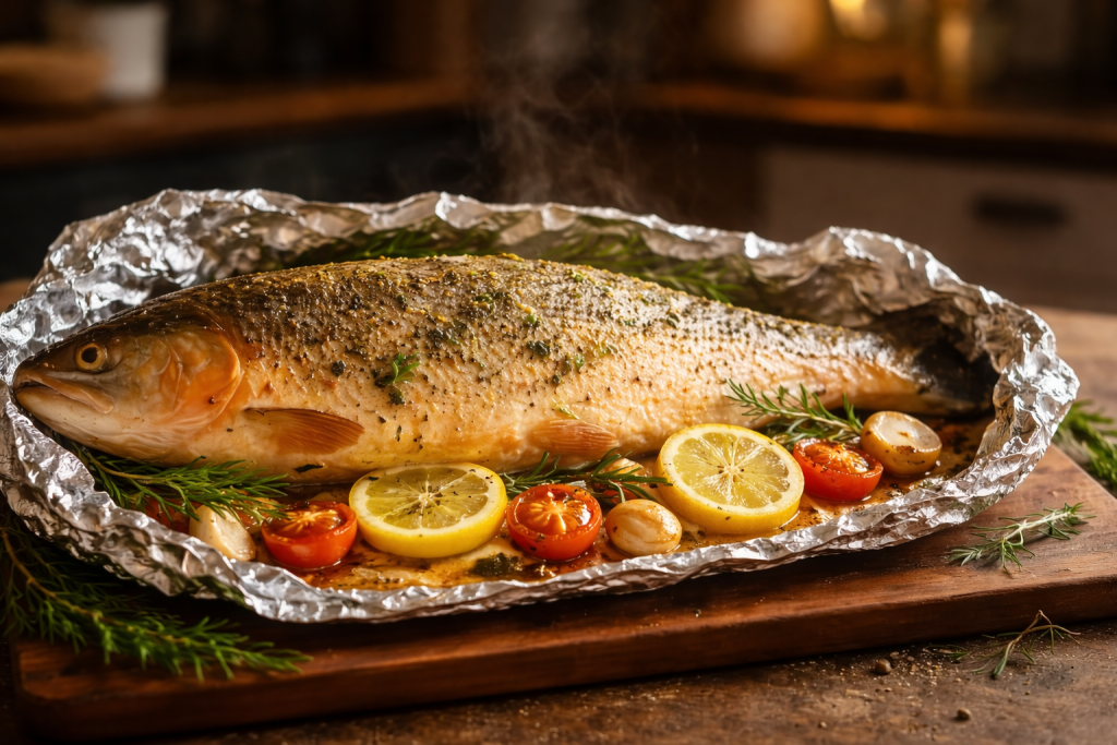 Recette de saumon entier au four en papillote